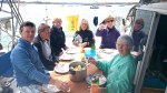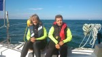 Ci joint qlq photos et une vidéo de notre WE sur Big Bang. J’ai rejoins Monique et Bruno vendredi soir, on a passé l’écluse en soirée pour ne pas être gênés par la marée et on a pris une bouée d’attente comme mouillage pour la nuit. Samedi matin, on a embarqué Christine, Nelly, Florence et Anne-Marie, nouvelle adhérente, et nous avons pris la direction de Chausey. En route, sous un beau ciel bleu, une mer calme et un vent de nord ouest, nous nous sommes fait escortés par des dauphins pendant de longues minutes…toujours trop courtes! Déjeûner en nav, galettes et crêpes et déjà l’île est en vue. Le mouillage du sound étant un peu compliqué pour le cata, nous avons jeté l’ancre côté ouest de l’île. Baignade pour Florence, Nelly et moi pour rejoindre la plage à la nage où on a fait bronzette avec Christine et Anne Marie déposées en Zod par Bruno. Retour bateau, apéro et tajine concocté pas Anne Marie: delicieux! Le cata se pose dans la nuit avec la marée et au petit matin, le vent s’est levé. Bruno prend un ris avant de partir et le bateau fait des pointes à 7-8 noeuds. Mouillage du déjeûner à l’abri des Ebihens et sieste puis retour vitesse grand V sur St malo: 30 noeuds de vent et vitesse au dessus de 10 noeuds! Bruno s’éclate! On laisse les filles aux Sablons dimanche avant de repasser l’écluse à 21h, ce qui nous laisse du temps pour savourer au dîner nos maquereaux tout frais pêchés! Je reste à bord pour une nuit supplémentaire avec Monique et Bruno, nous repartirons le lundi matin après avoir vu un magnifique levé de soleil avec des montgolfières au dessus de la Rance.