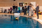 Dimanche 25 novembre, nous avions rendez-vous dans la fosse de plongée de Rennes pour tomber à l’eau tout habillé. Une bonne dizaine d’entre nous n’a pas hésité à se mouiller dans une tenue de pont, avec veste de quart et bottes, mais aussi pour certains sans gilet de sécurité. Nous avons pu nous apercevoir qu’il ne restait pas grand-chose de nous à la surface. Pour respirer il était nécessaire de nager, autant que possible dans cette tenue qui n’est pas, il faut bien le dire, très adaptée à la natation. Et encore, comme il fait chaud dans une piscine nous n’avions pas revêtu comme en mer où il peut faire bien plus froid.