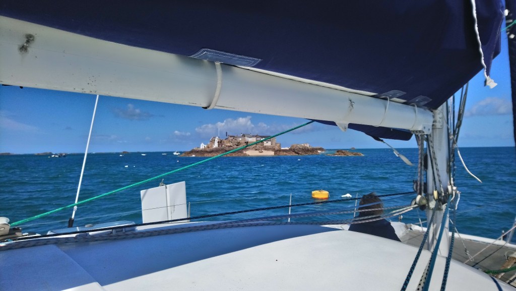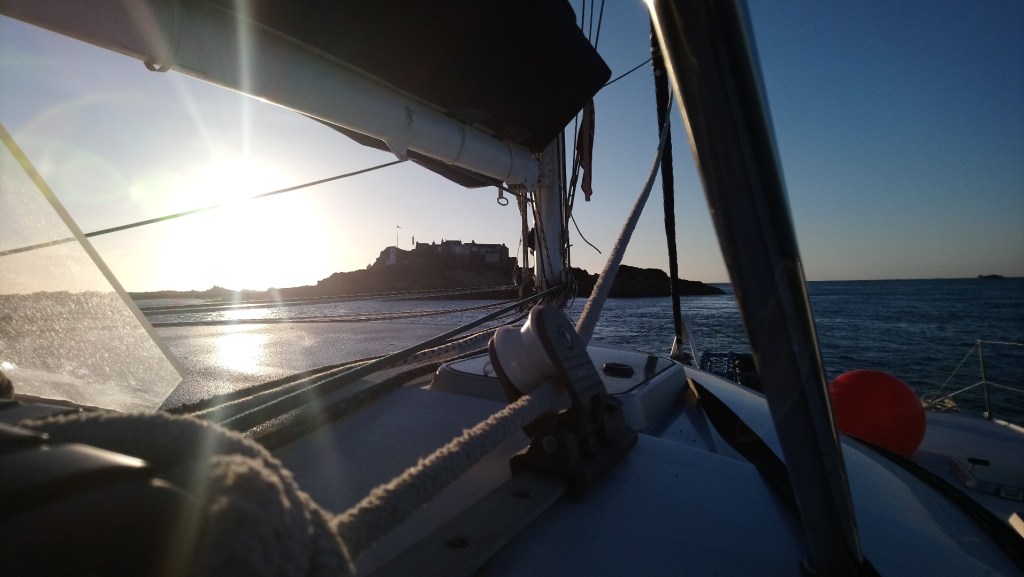 Passage de l’écluse à 9h, et nous voilà partis, avec 2 ris dans la grand-voile, en direction de Jersey que nous avons atteint en 7h.