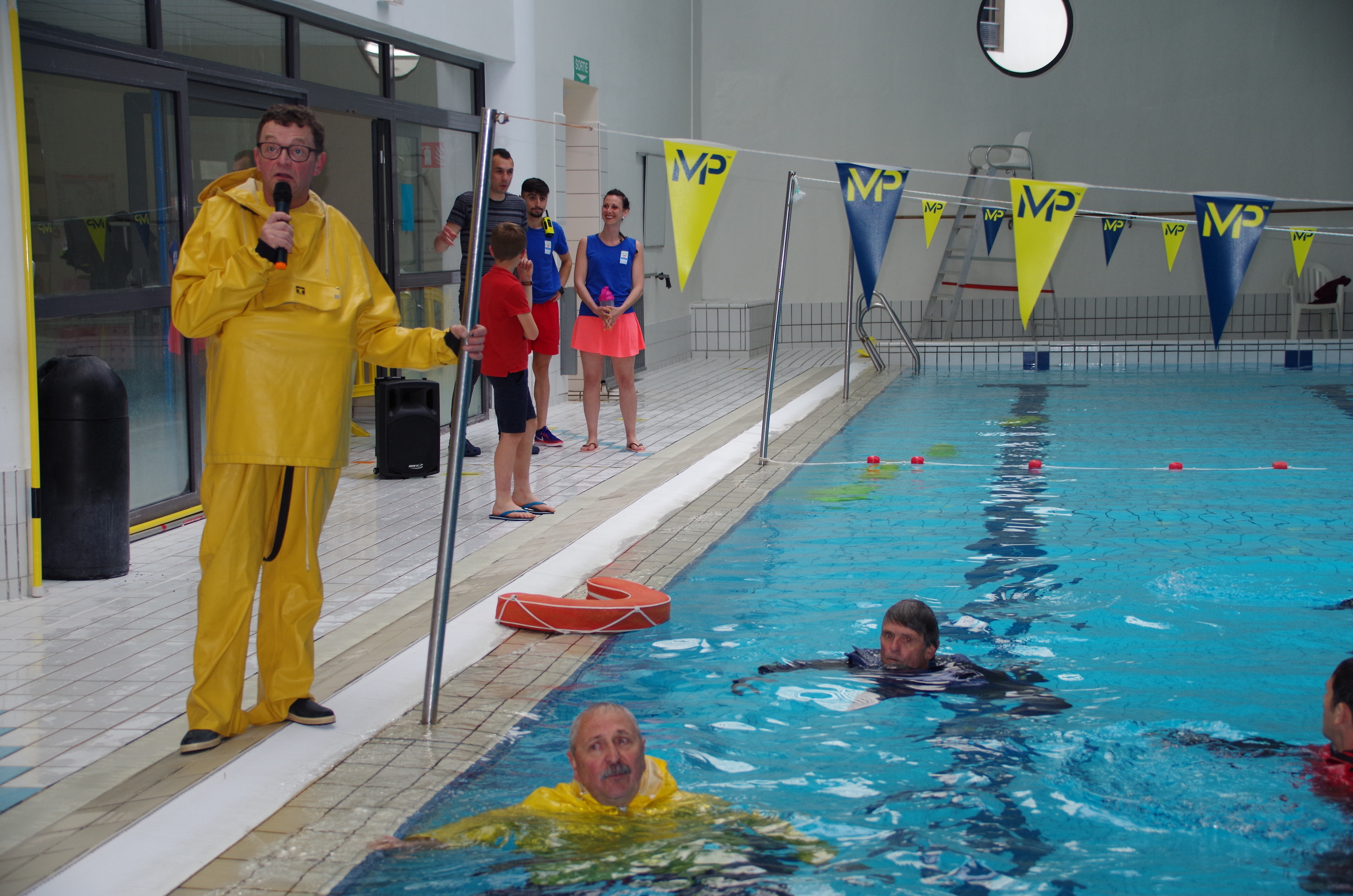 Les représentants de la SNSM nous ont fait de jolies présentations de sauvetage de victime dans l’eau, et sur le bord du bassin des gestes qui sauvent. Bilan d’une victime, mise en PLS (position latérale de sécurité) simulation de bouche à bouche , massage cardiaque externe et utilisation d’un défibrillateur semi automatique.