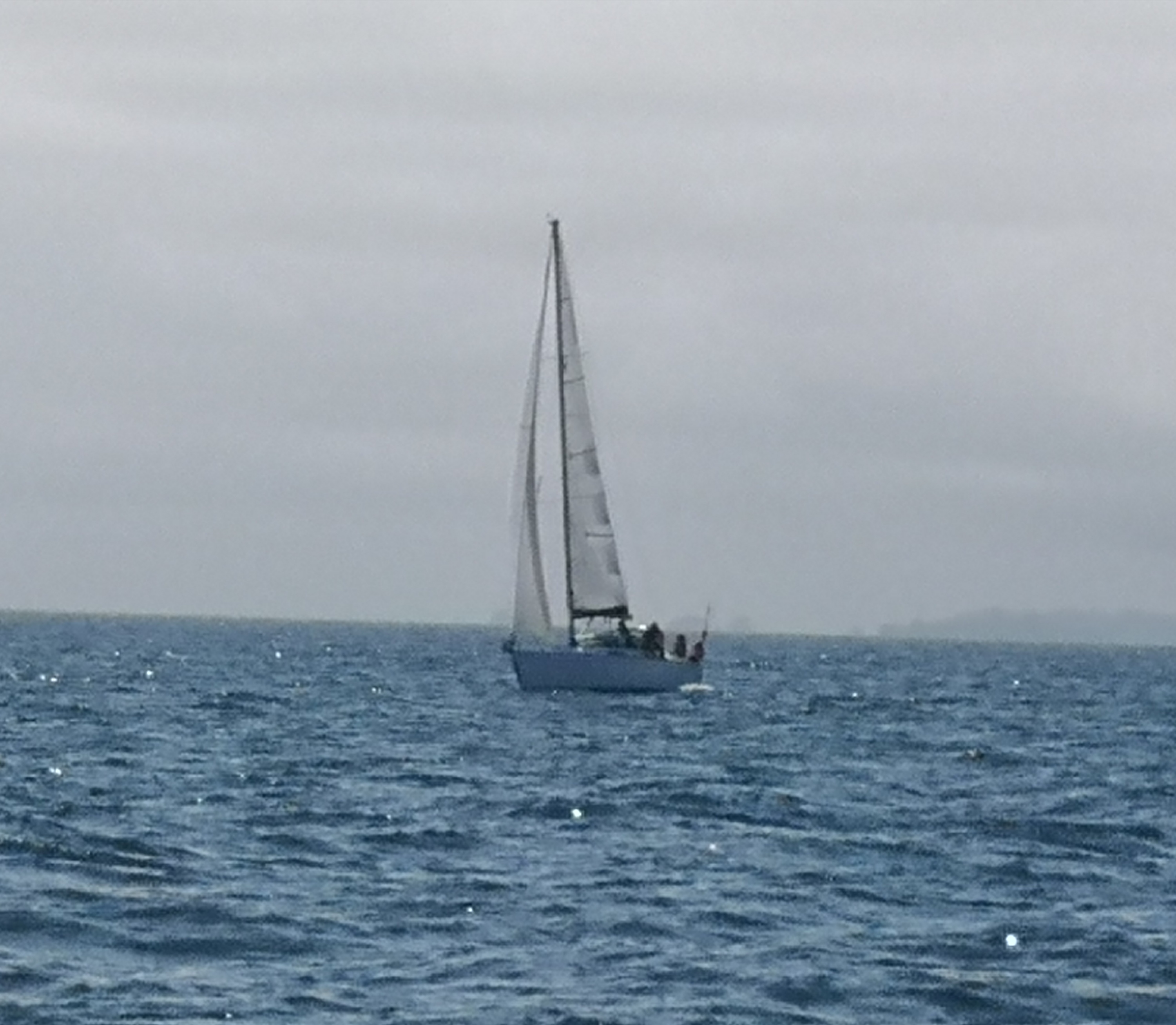 Après le bizutage du coup de la panne du pont du barrage de la Rance sous un crachin breton, nous avons pu naviguer vers Erquy, ah non Chausey dans une brume malouine !