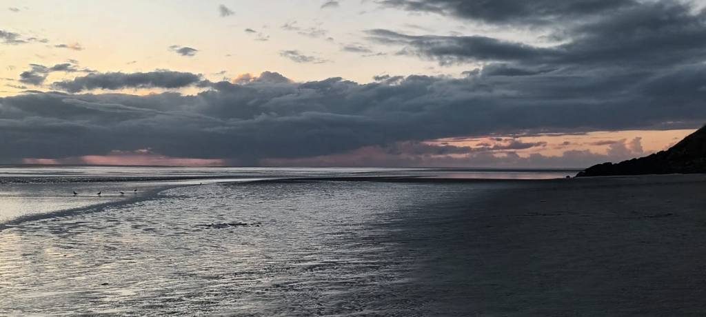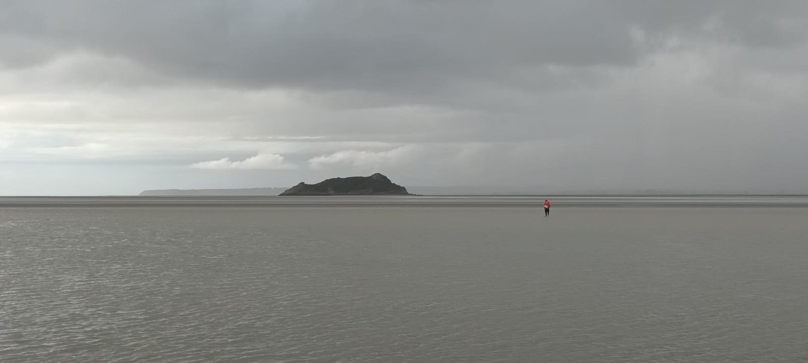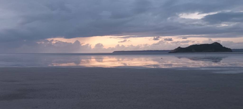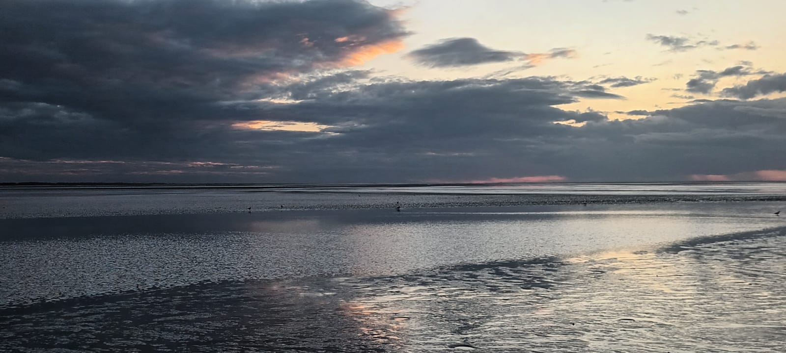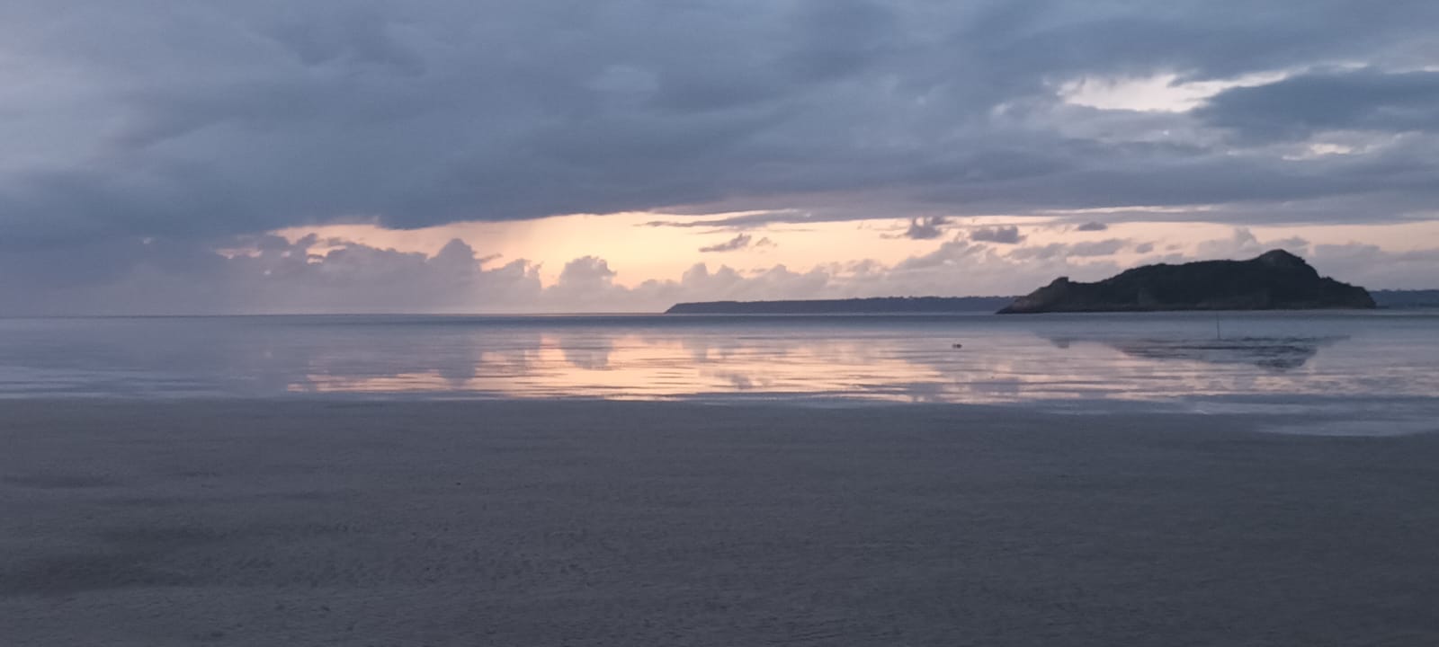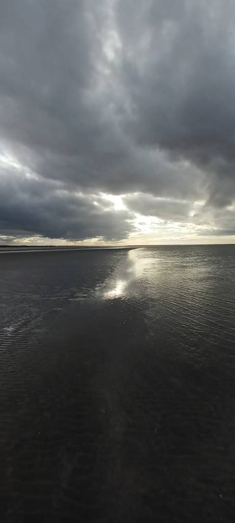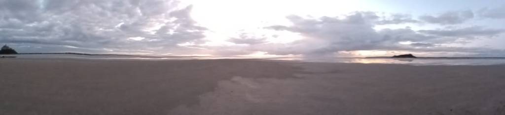 La journée de ce samedi 13 septembre s’annonçait pluvieuse et venteuse pour notre sortie au Mont Saint Michel. Rdv fixé avec notre guide Deborah des Chemins de la Baie devant l’entrée du Mont. Présentations faites, nous nous mettons en marche après quelques conseils et explications de notre guide sur la traversée que nous allons faire. Nous partons sous 1 faible pluie qui ne durera qu’1/4 d’heure puis nous serons préservés pour le reste de la sortie. Deborah prend le temps de nous raconter un peu d’histoire, de nous expliquer la géographie de la baie, ce que l’on peut y trouver comme vie, la faune, la flore…plein d’explications et d’anecdotes enrichissantes qui ponctuent notre marche. Pendant les 2h que dure la traversée vers Tombelaine, les couleurs sur la baie sont magnifiques avec le ciel d’orage sur les terres intérieures qui nous entourent. Nous traversons 2 rivières, le Couesnon et la Selune, non sans avoir expérimenté de façon ludique les sables mouvants. Certains ont été bien téméraires ! Le pique nique sur les rochers au pied de Tombelaine fut le bienvenu, accompagné d’un rayon de soleil et de lumières magnifiques. Au coucher du soleil, retour vers le Mont à la tombée de la nuit. La nuit est douce et le retour nous emerveille. Le Mont s’allume pour le plaisir de nos yeux. On se retrouve à l’entrée du Mont après avoir retraversé la baie et ses rivières. Rinçage des pieds à l’eau douce et retour au parking par la navette. Le temps nous a gâté, de beaux rêves nous attendent…