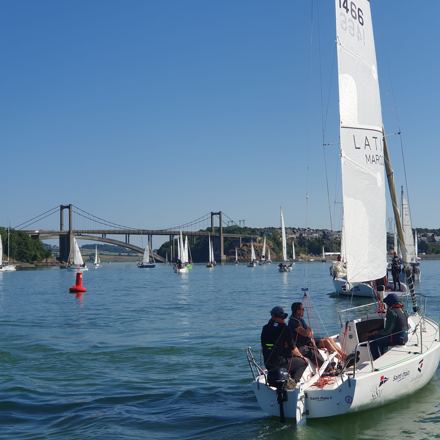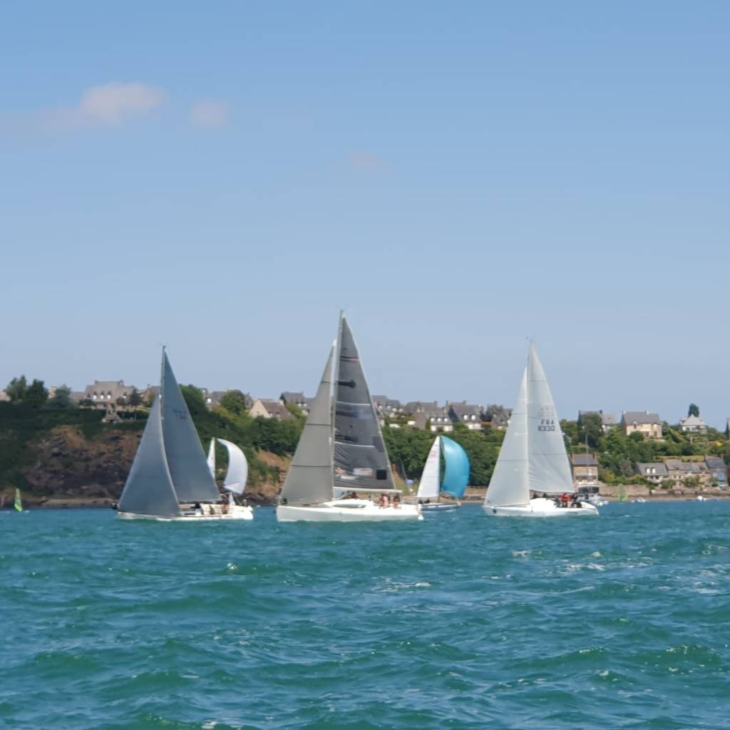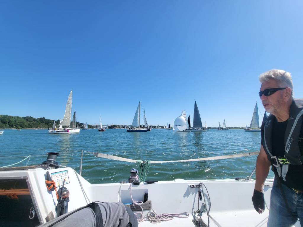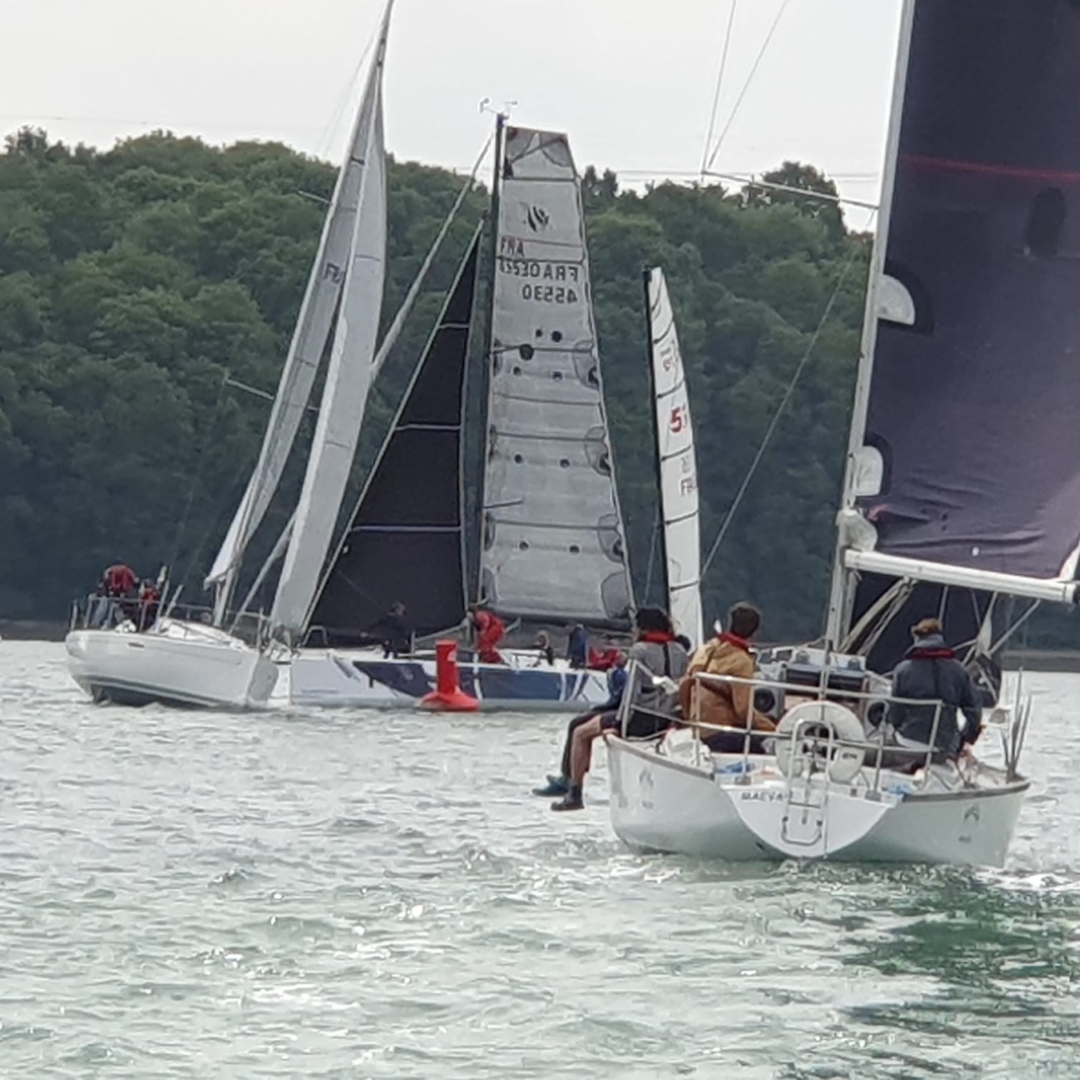 Et les fauves s’élancent !!! Au début tout va bien,puis petit à petit le démon de la course s’empare des pilotes et ça tire ferme sur les écoutes,certain même échappe de peu à la collision,d’autre que je ne peux pas nommer emporte les marques du parcours avec eux,puis le vent devient inconstant et là certain pilotes sont à l’arrêt complet et se font doubler par les copains rigolards avant d’être eux même planté dans le trou de vent.