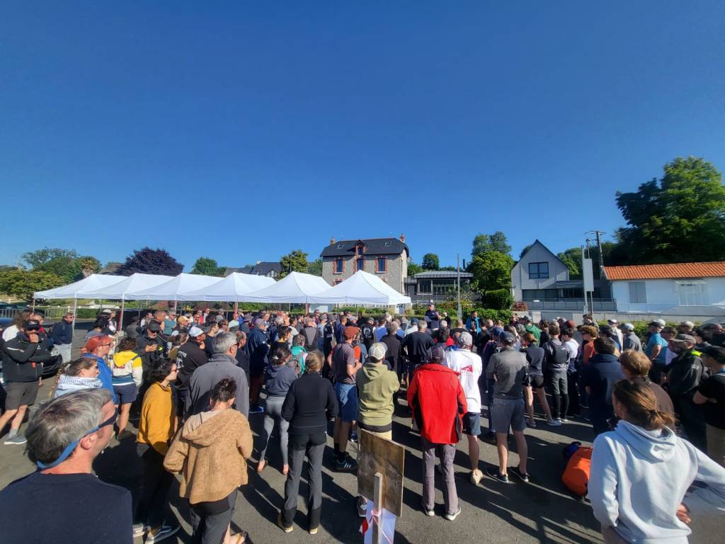 Puis vient l’heure de s’habiller en voileux des sables,combinaison pour certain,vieux ciré Cotten pour d’autres mais le casque et sa charlotte pour toutes et tous.Les plaisanteries vont bon train l’ambiance et plus que joyeuse parmi ces grands enfants.