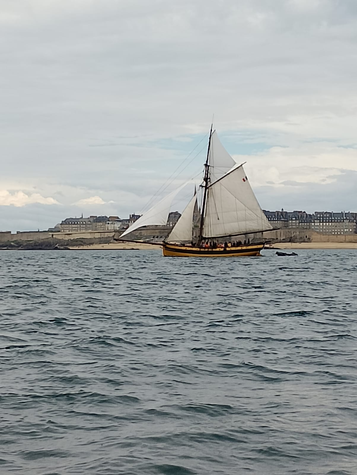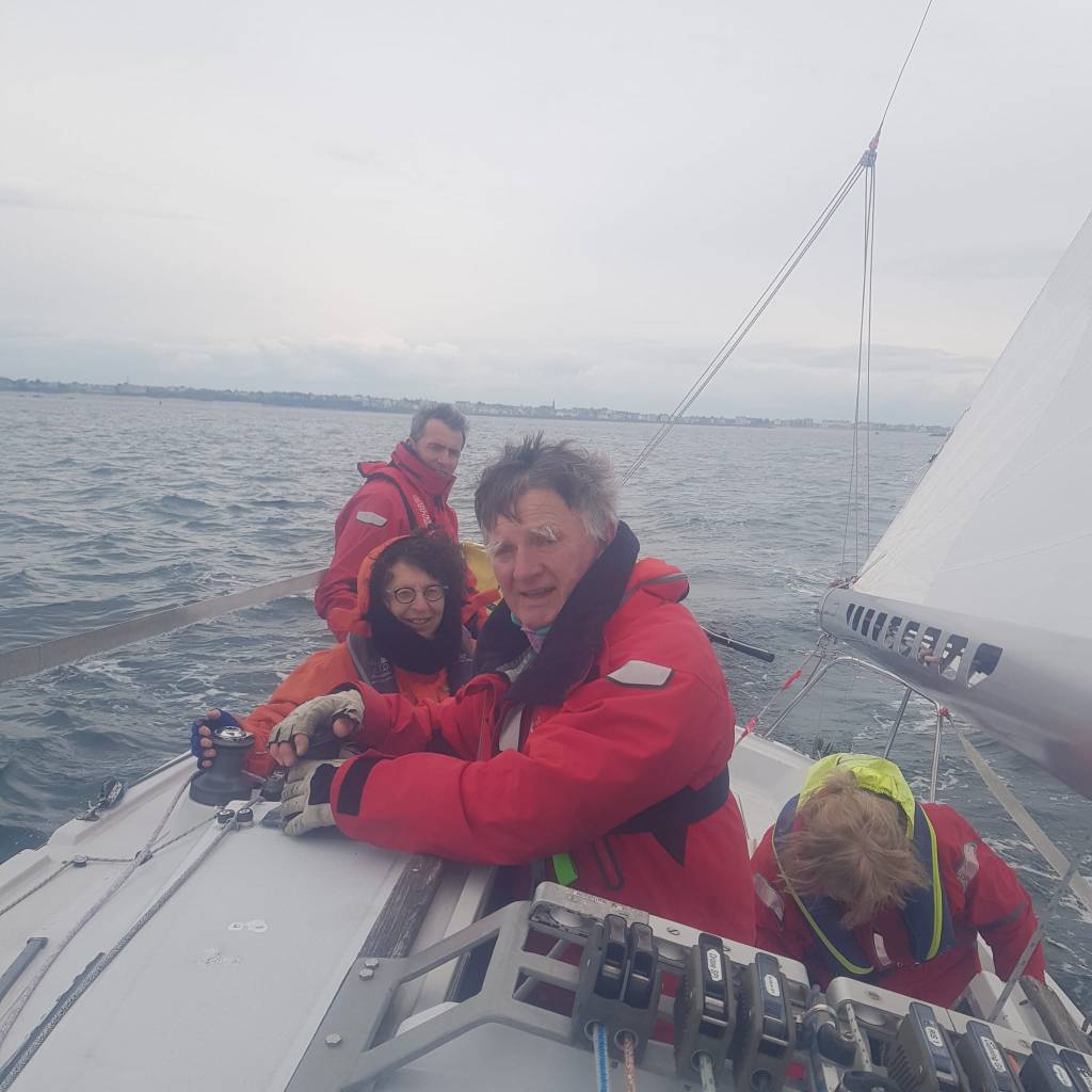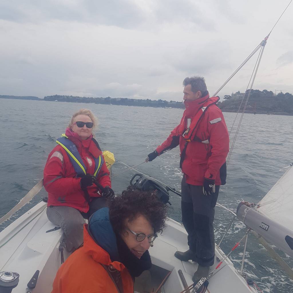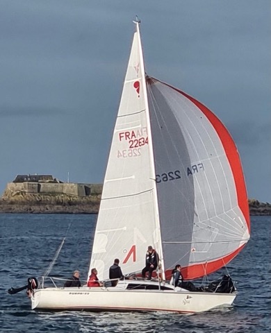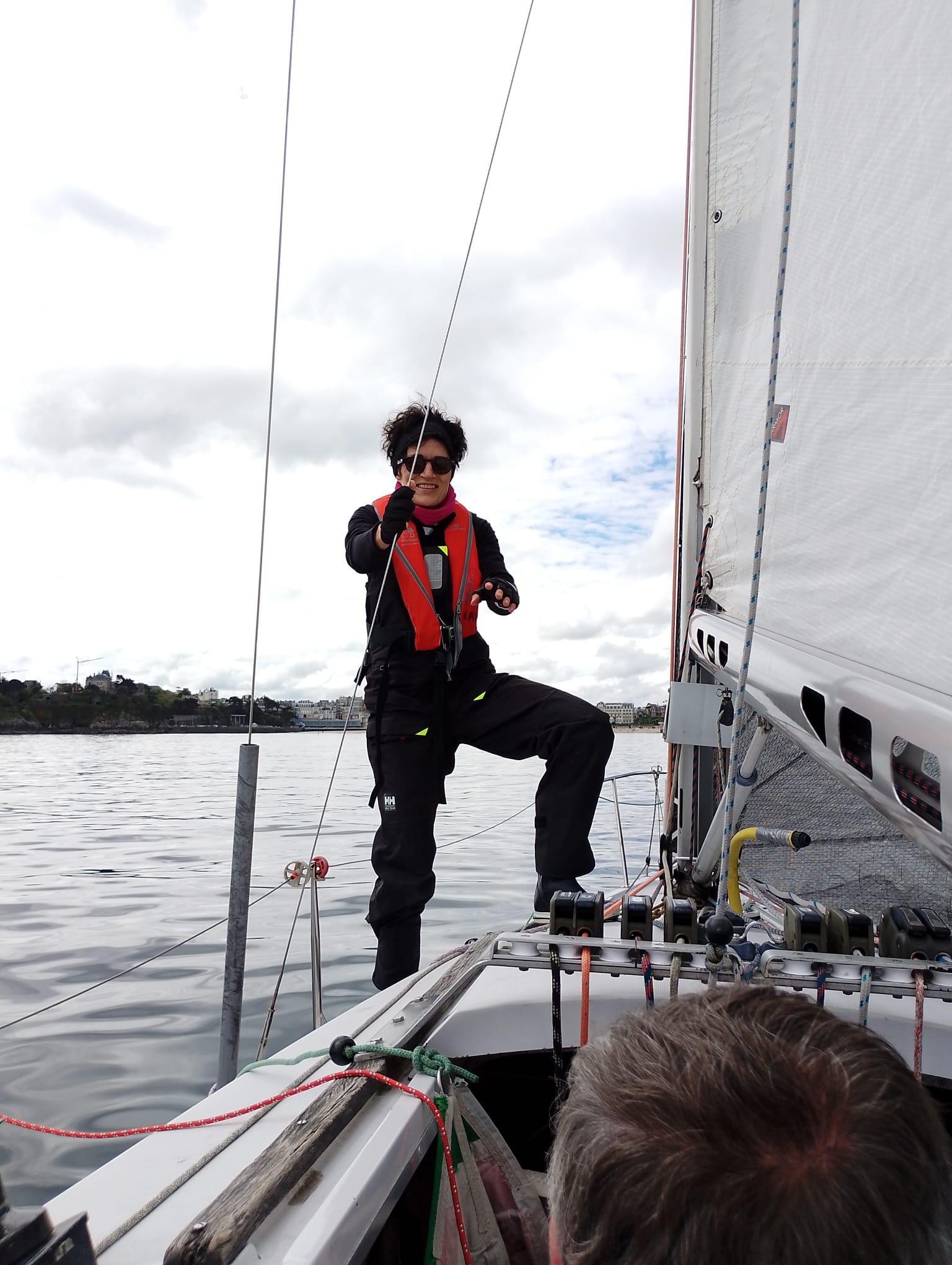 Nous étions cinq à bord : Chantal, Pascale, Nathalie, Éric et Patrick. Peu de vent le matin, pause déjeuner sur bouée devant Dinard, puis navigation vers la Saint-Servantine au près et retour sous spi avec quelques empannages devant le Sillon. Le soir, après une bonne averse au port, dîner au Globe Trotter puis dodo chez Pascale – un grand merci à elle !