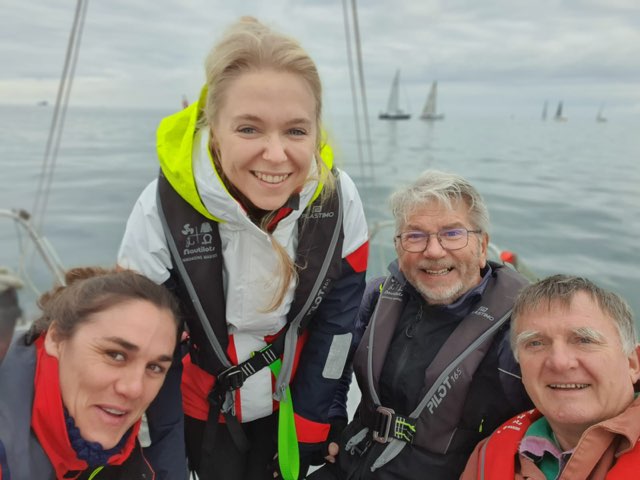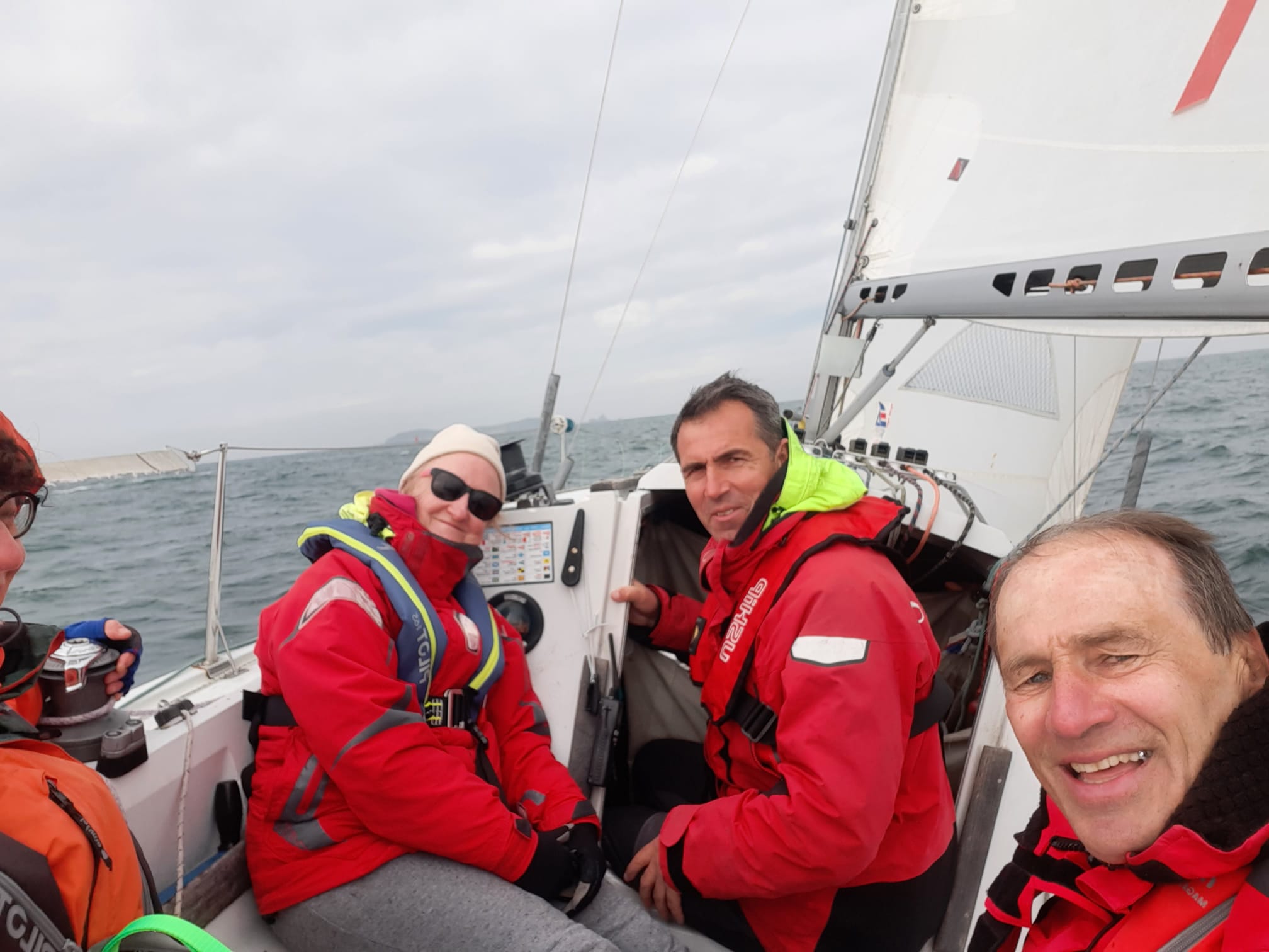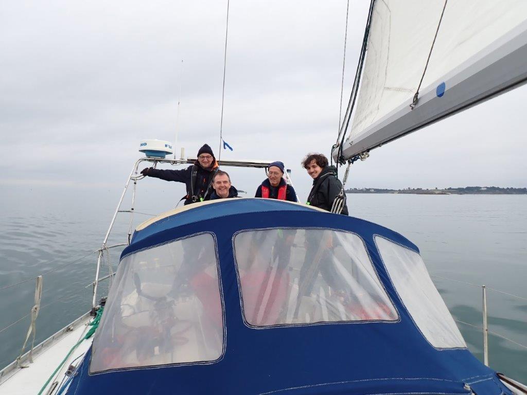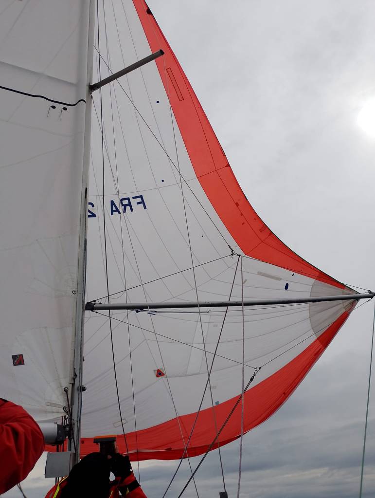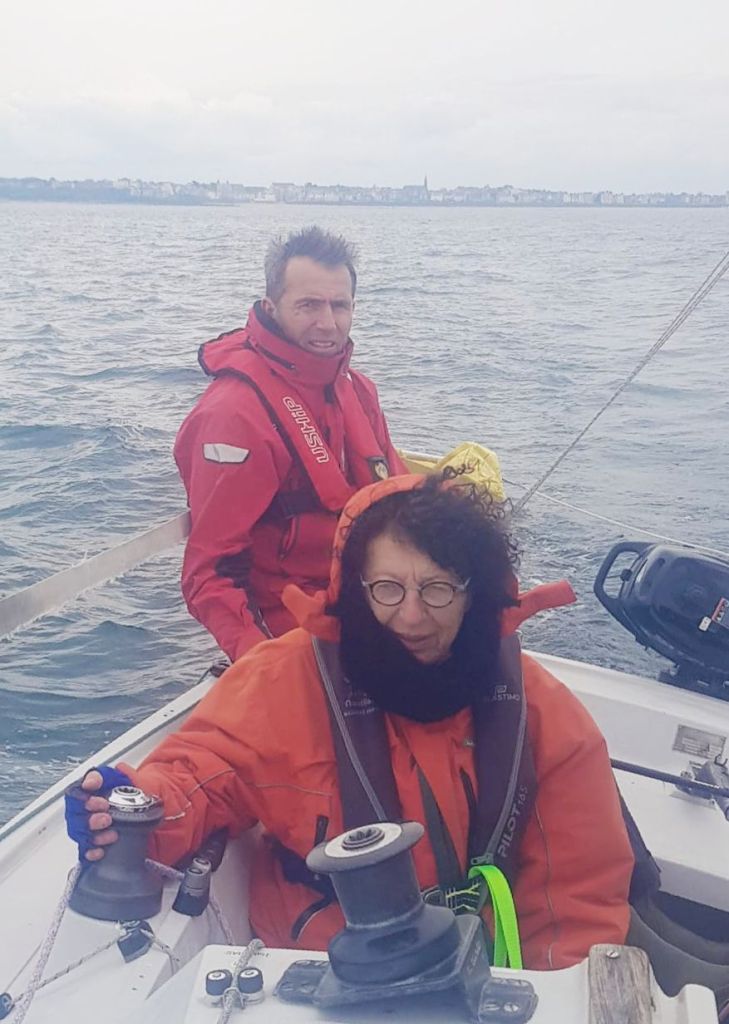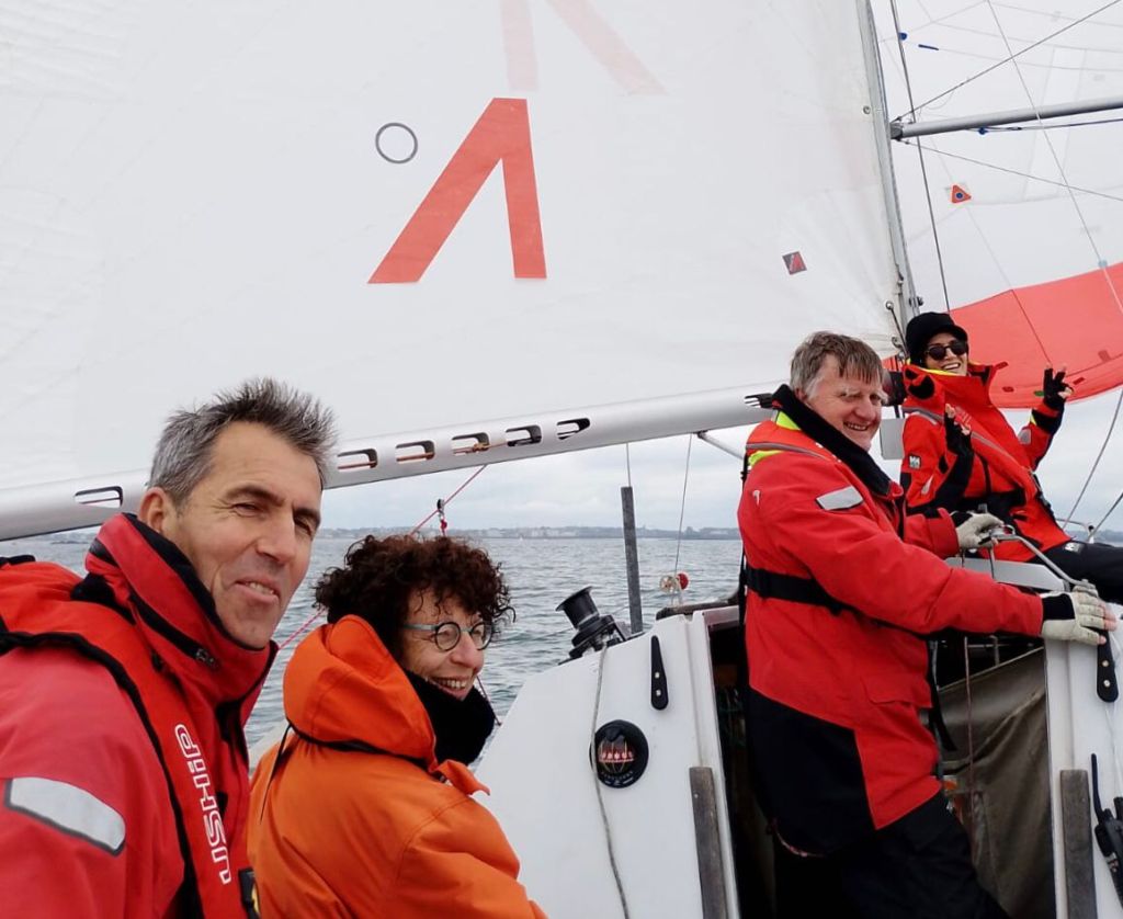 Nous étions cinq à bord : Chantal, Pascale, Nathalie, Éric et Patrick. Peu de vent le matin, pause déjeuner sur bouée devant Dinard, puis navigation vers la Saint-Servantine au près et retour sous spi avec quelques empannages devant le Sillon. Le soir, après une bonne averse au port, dîner au Globe Trotter puis dodo chez Pascale – un grand merci à elle !