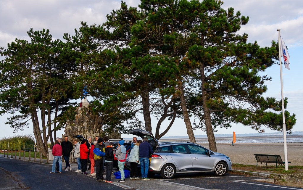 Donc le plan B s’impose, après une rapide réunion des participants pas question de pousser les chars,nous partons donc pour une petite randonnée direction le Mont Saint Michel que nous apercevons dans la brume matinale.