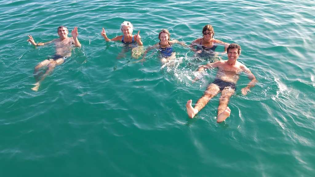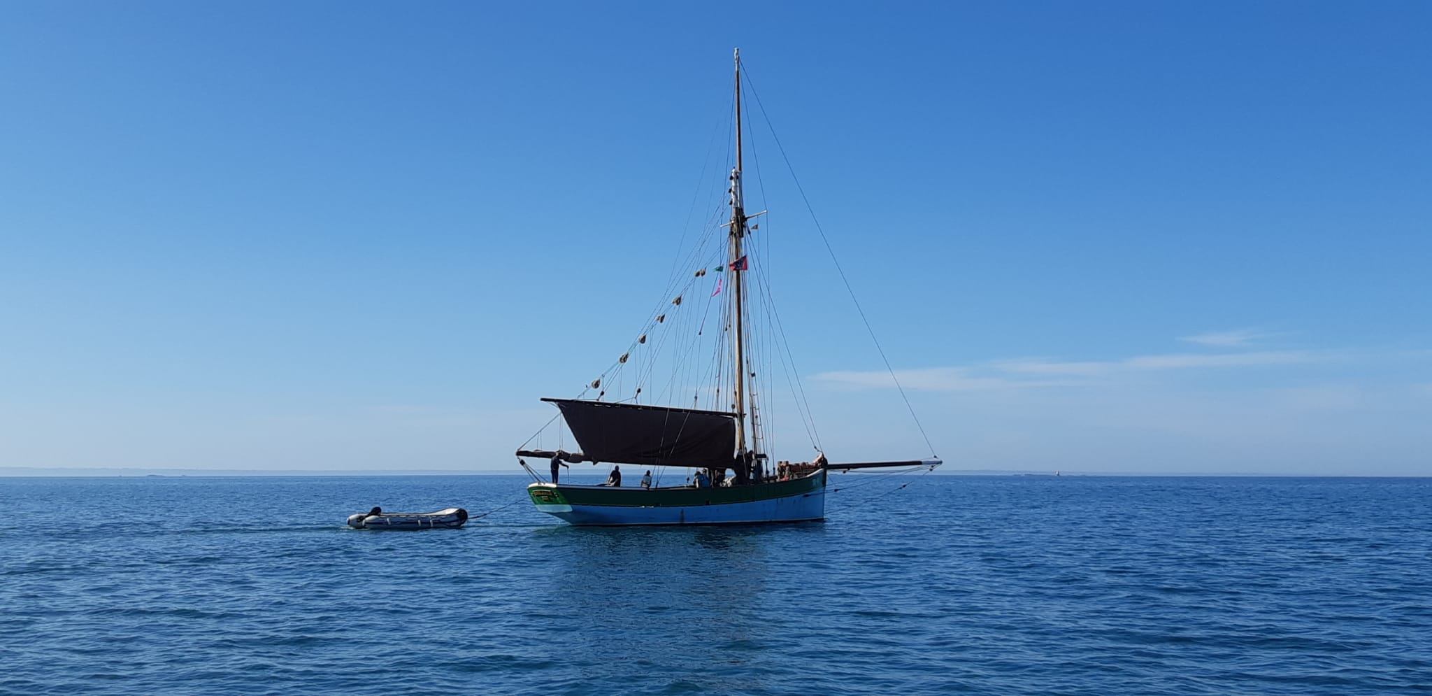 En milieu de journée, nous profitons peut-être de notre dernier bain de mer de la saison. À 13h, nous larguons les amarres, ayant la « Sainte Jeanne » à bâbord. Le retour nous offre une nouvelle perspective sur le littoral. Nous repassons le Cap Fréhel et Christine nous régale à nouveau de crêpes préparées à bord.