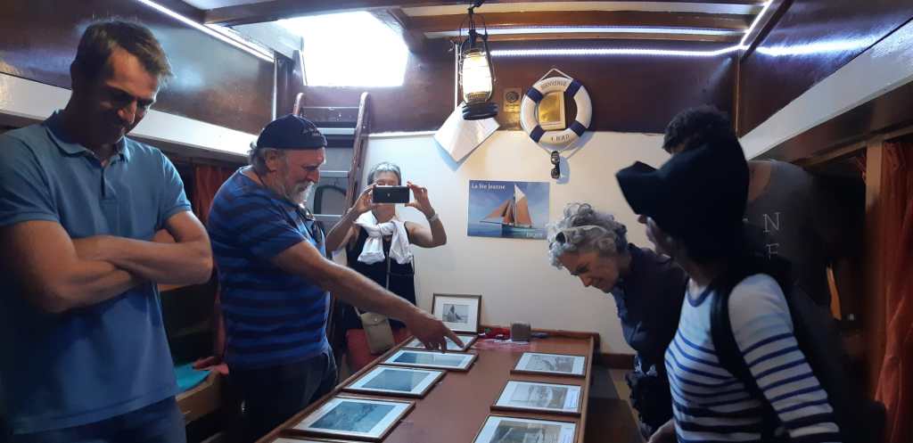 Arrivés à bord en début de soirée, nous rangeons les sacs, les repas (et les bouteilles…) puis chacun prend connaissance du bateau qui sera son environnement pour ces prochaines 48 heures.